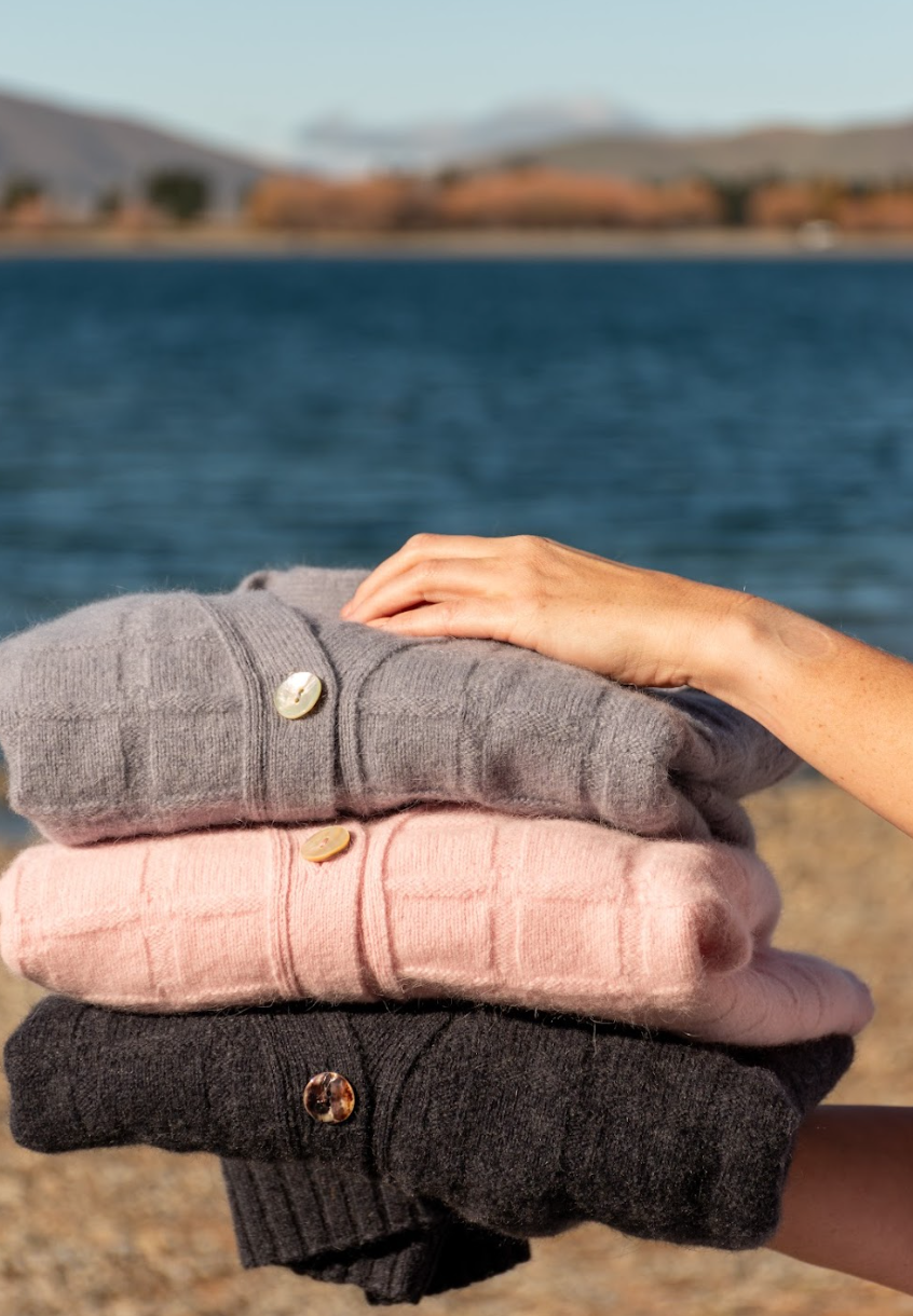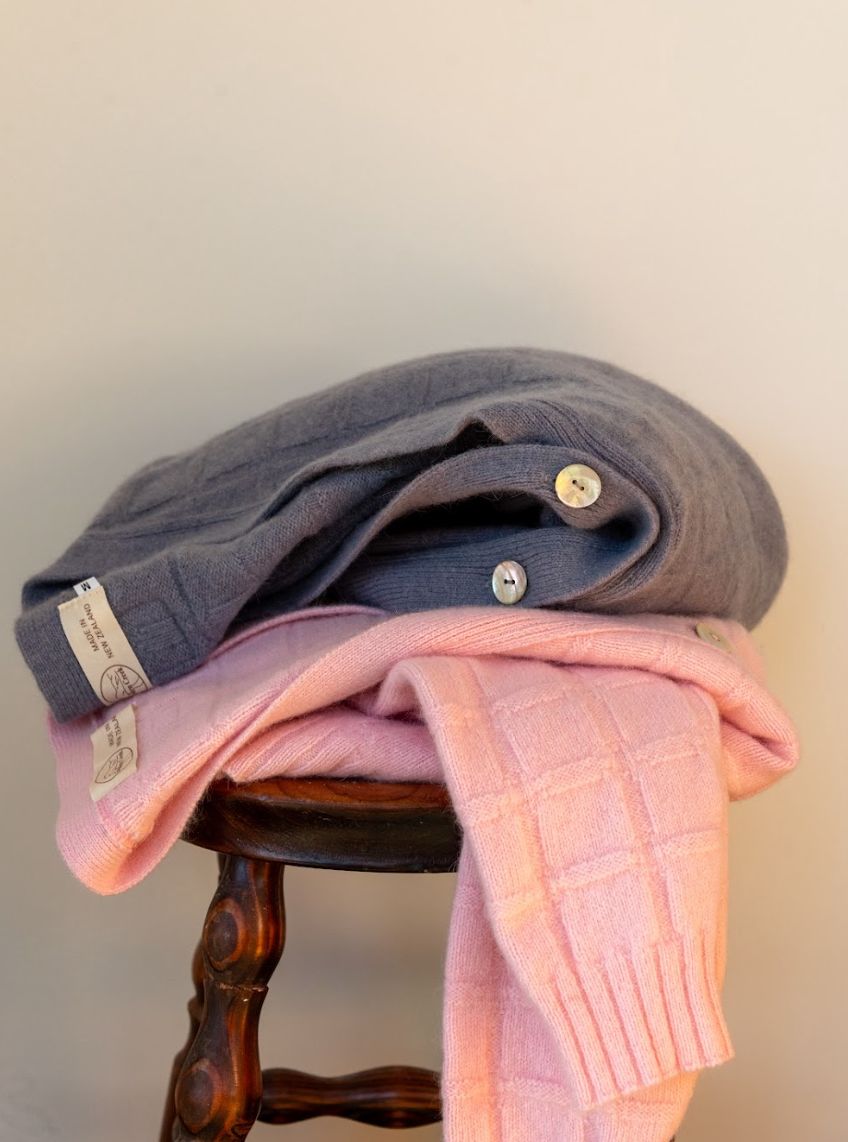 The most perfect cardigan — relaxed, cozy, and just the right amount of special. It’s made from a dreamy blend of 25% angora and 75% mid-micron merino wool, so it’s super soft with a bit of that fuzzy, luxurious feel. The subtle check pattern gives it a little extra texture and character without being loud. It drapes beautifully, feels light but warm, and works just as well thrown over jeans as it does layered up on cooler days. Basically, your new favorite forever piece.
