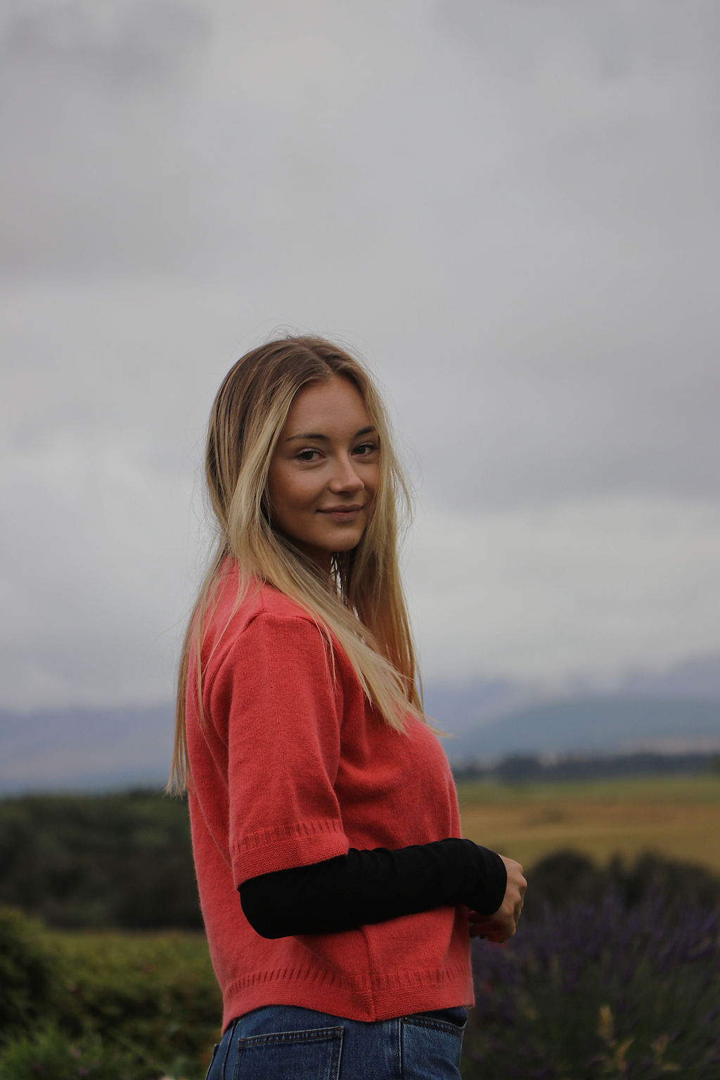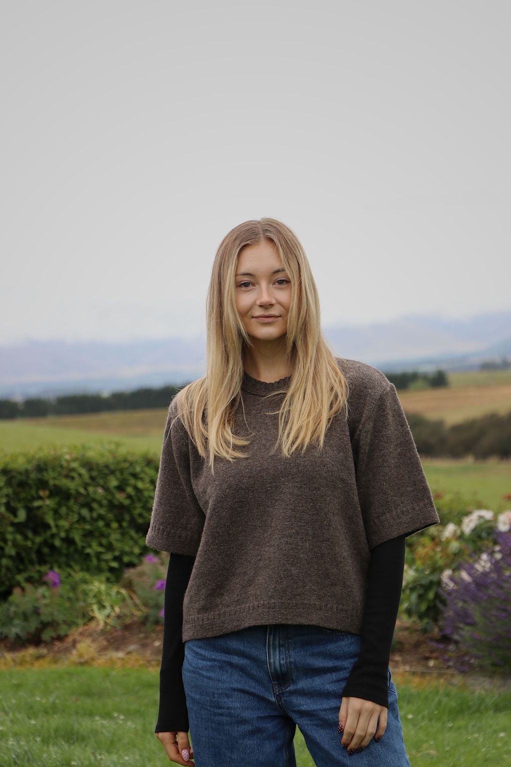 Available in Rose and Brown, made from an 80% Merino cross wool / 20% Angora wool blend for softness and warmth.